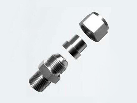 扩口管接头说明:扩口式接头是以油、水、气、与各种腐蚀性材料为介质的管路中的一种连接器。性能规范□ 制造范围:GB5625~5653~83□ 适用温度:≤450℃□ 适用介质:油、水、气□ 制造材料:20#,1Cr18Ni9Ti,0Cr18Ni12Mo2Ti,316L□ 配管外径:ф4~ф834普通级精度无缝钢管、紫铜管
